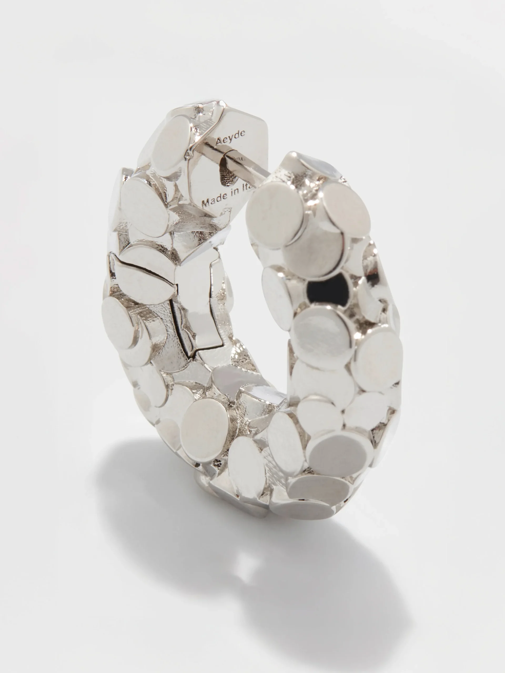 Aeyde jewelry is made in Italy by craftspeople renowned for their expertise in working with upcycled materials and palladium and 18kt gold plating.